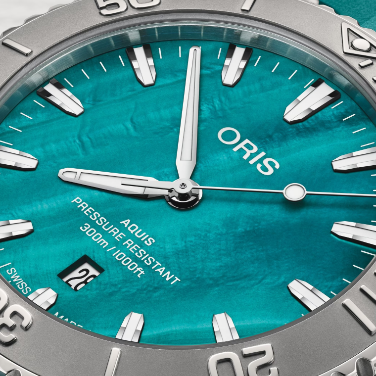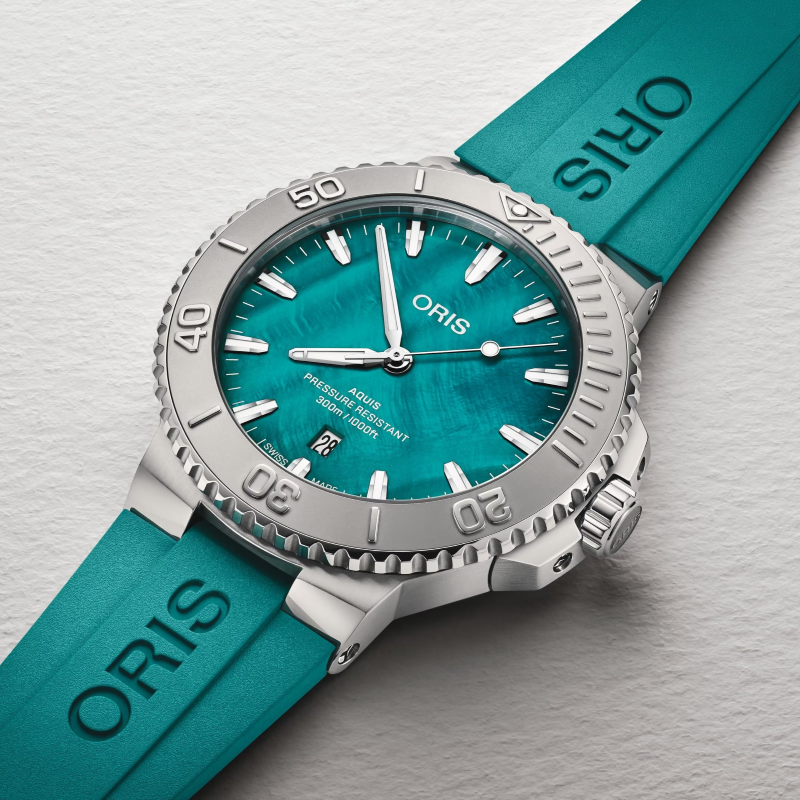 ニューヨークハーバー限定IIはBillion Oyster Projectのための特別なアクイスデイト。アクアグリーンの輝くシェル文字盤、30気圧防水、2,000本限定。