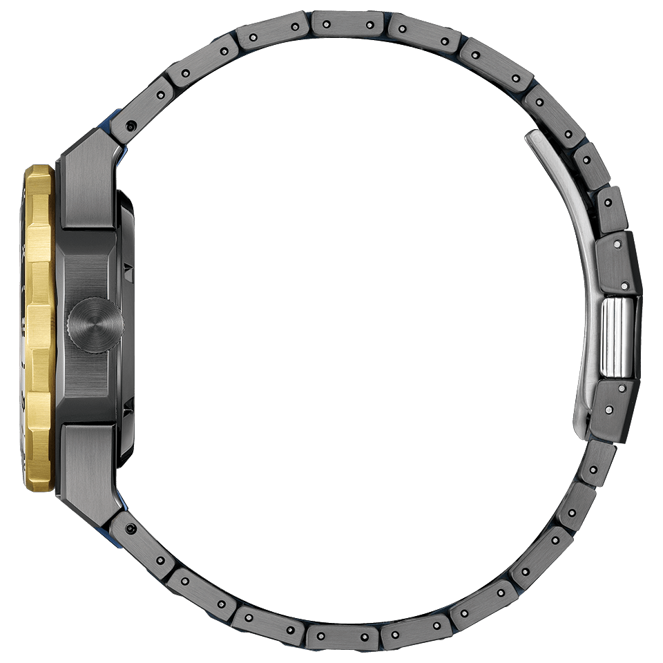 GMT機能付きムーブメントCal.9054を搭載。グレーめっきをベースに、アクセントカラーとしてホワイトとゴールドを使い、都市の灯りに照らされた雪の夜を表現しています。文字板は、ホワイトからブラックへのグラデーションで仕上げたオリジナルパターンを採用。アスファルトを覆う降り積もる雪が、都市の灯りに照らされている様子をイメージしています。ベゼル・インデックス・針に、夜の都市の灯りを想起させるゴールドをあしらい、特別感をきわだたせています。