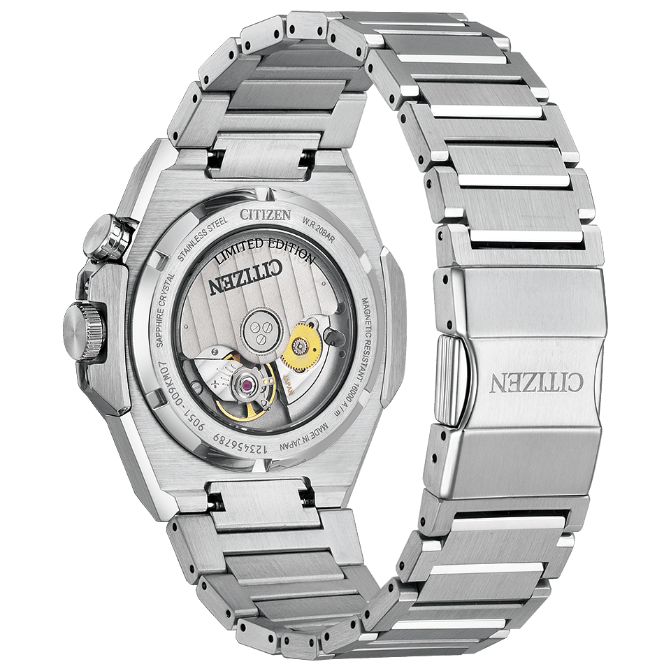 シリーズエイトの都会的でモダンな世界観、朝と夜の異なる表情を、モノクロームカラーと幾何学的な文字板のパターンで表現。シンプルでありながらも、20気圧防水を備え、上質でスポーティな存在感を放つ「890 Mechanical」シリーズの限定モデルです。
