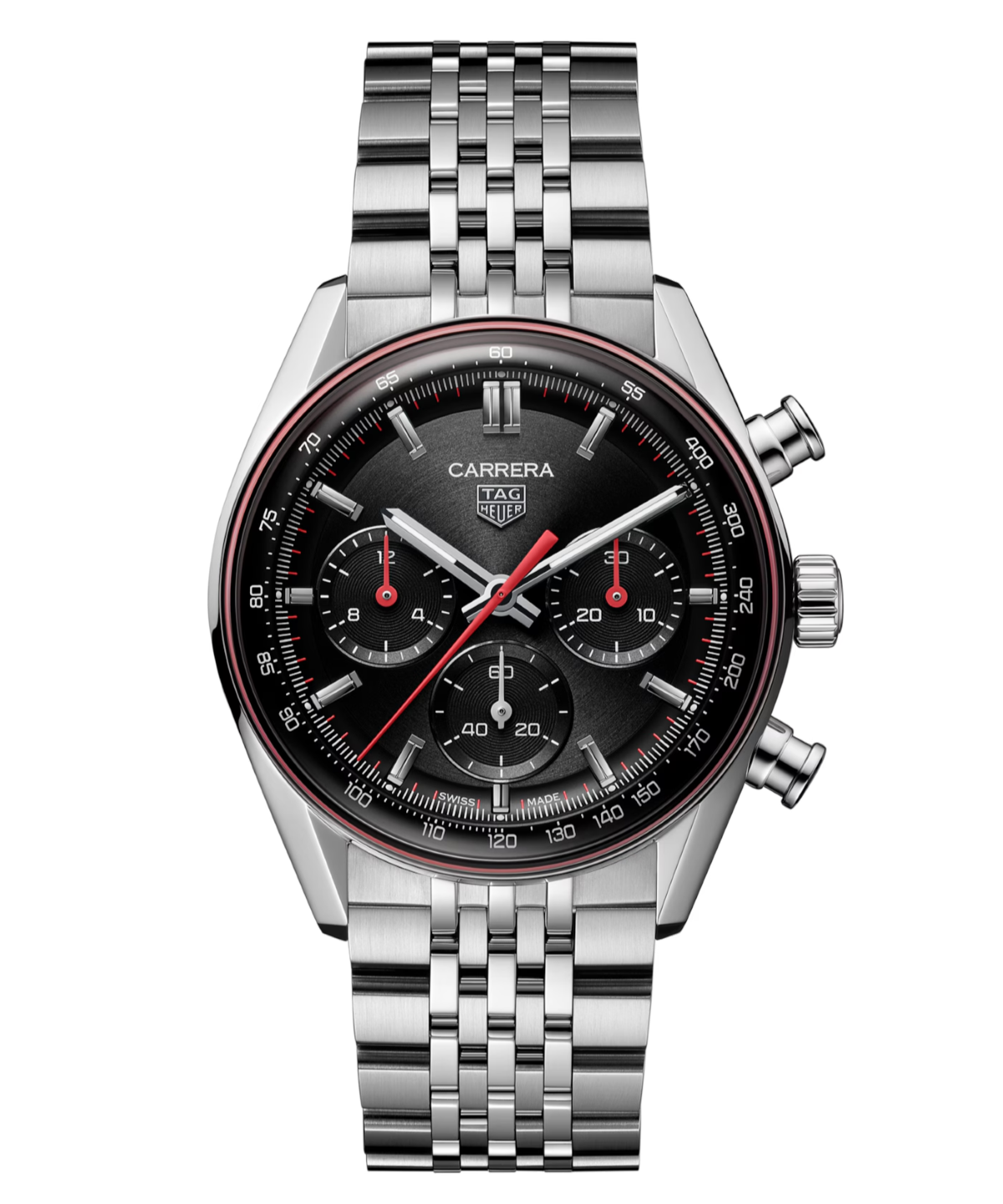 印象的なブラックダイヤルに繊細なレッドの外周リングがモーターレーシングのDNAを体現する、ダイナミックで挑戦的な41mmのタグ・ホイヤー カレラ クロノグラフ。精度とコントラストを大胆に解釈し、モータースポーツからのタイムレスなヘリテージを現代的な感性でシャープに再構築しています。約80時間のパワーリザーブを誇る自社製キャリバー TH20-01を搭載しています。