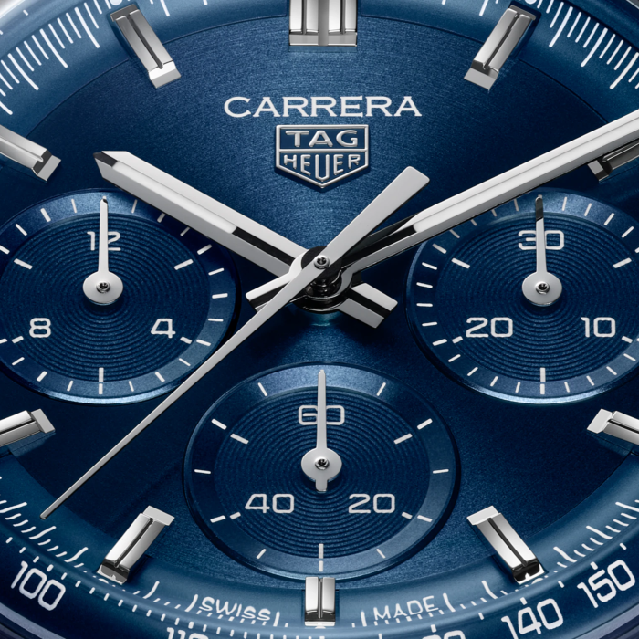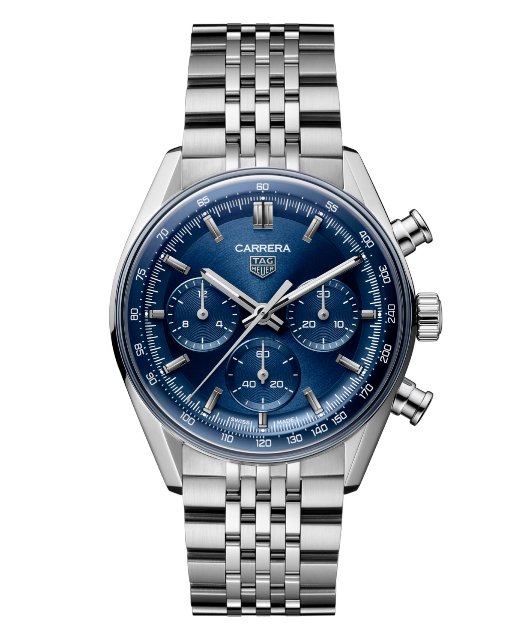 サーキュラーサテン仕上げのブルーダイヤルが目を引く、圧倒的な存在感と洗練されたバランス感覚を兼ね備えた、41mmのタグ・ホイヤー カレラ クロノグラフ。自社製自動巻キャリバー TH20-01を搭載し、タイムレスで汎用性の高いデザインの中にモータースポーツ精神を体現する、カレラが誇る高い精度とパフォーマンスを讃えるトリビュートモデルです。