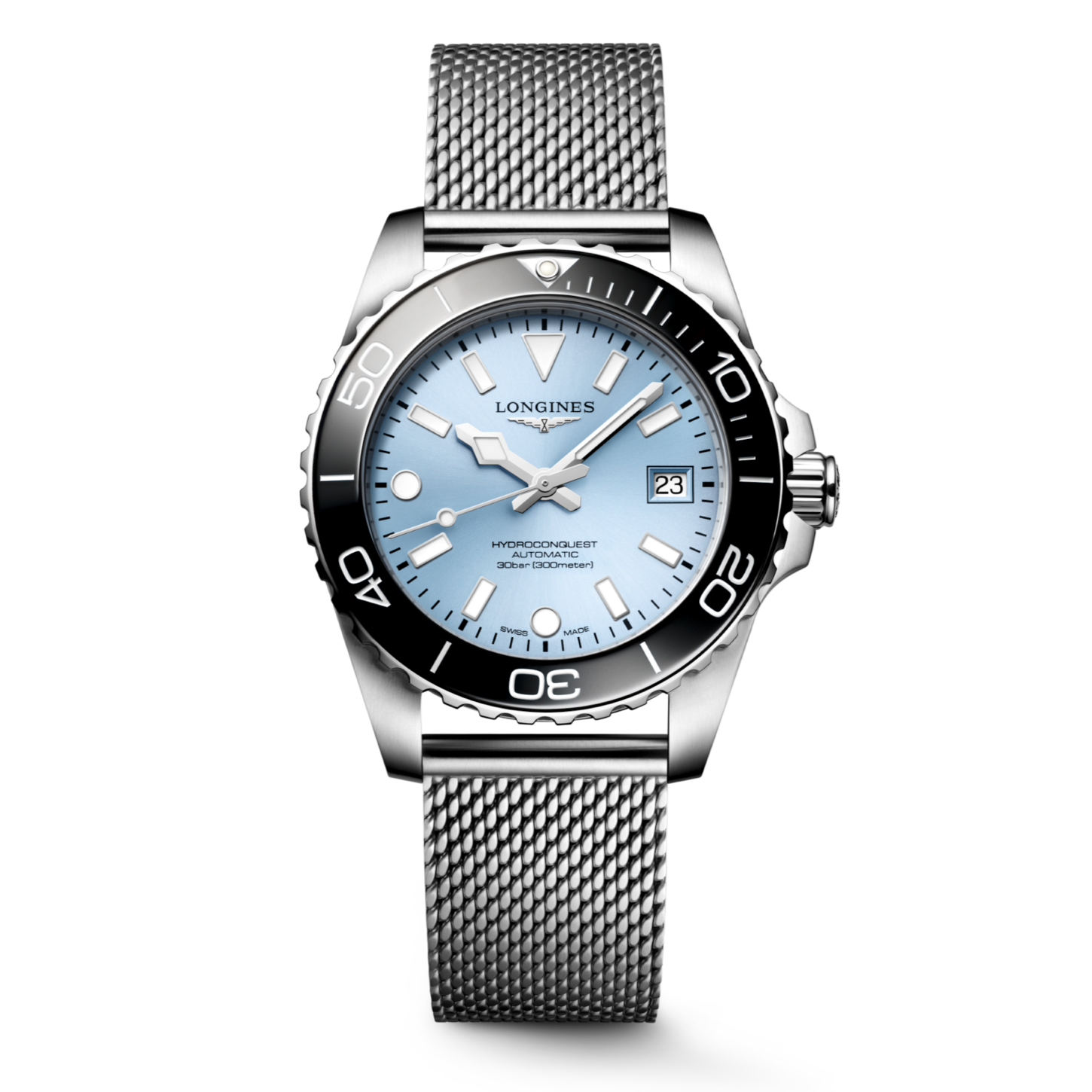モダンな美しさと確かな性能が融合した「ハイドロ コンクエスト」コレクション ロンジン独自の自動巻きキャリバーを搭載し、30気圧(300m)の防水性能、逆回転防止ベゼル、ねじ込み式リューズ、ねじ込み式ケースバックを採用。