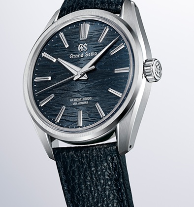 グランドセイコーの真髄と日本の美意識を高い次元で融合させた独自のデザイン文法「エボリューション9スタイル」をベースにした、10振動手巻メカニカルウオッチです。ネイビーカラーのダイヤルは、月あかりに照らされた白樺の樹皮をイメージしました。ステンレススチール製のケースは厚さ9.95mmと薄型に仕上げ、すっきりとしたインデックスやベゼル、ラグの幅が、グランドセイコーのドレスウオッチにふさわしい繊細で優美なる存在感を演出。ムーブメントには、安定した精度につながる毎秒10振動という高い振動数と、最大80時間もの長い持続時間を実現する「キャリバー9SA4」を搭載しています。