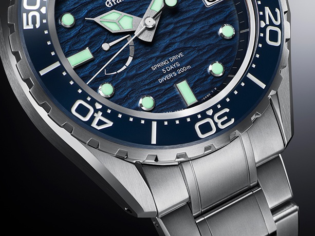 グランドセイコーのデザインを規定する「グランドセイコースタイル」を発展させ、腕時計としての使いやすさや美しさをさらに追求した独自のデザイン文法「エボリューション9スタイル」とダイバーズウオッチに求められるISO規格を兼ね備え、判読性、操作性、堅牢性を高めています。