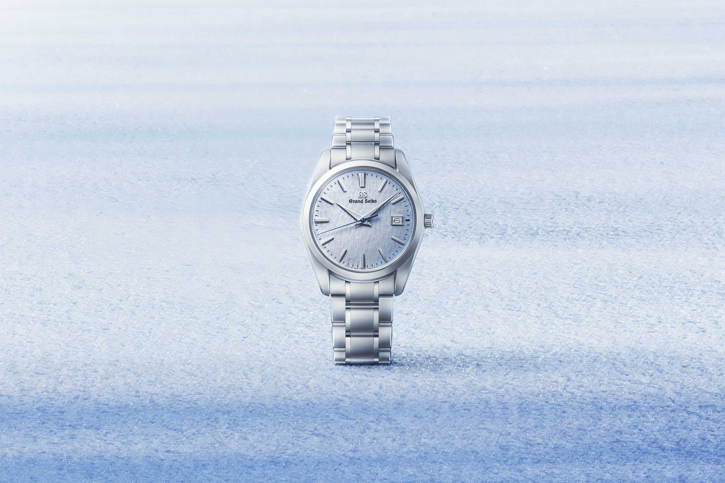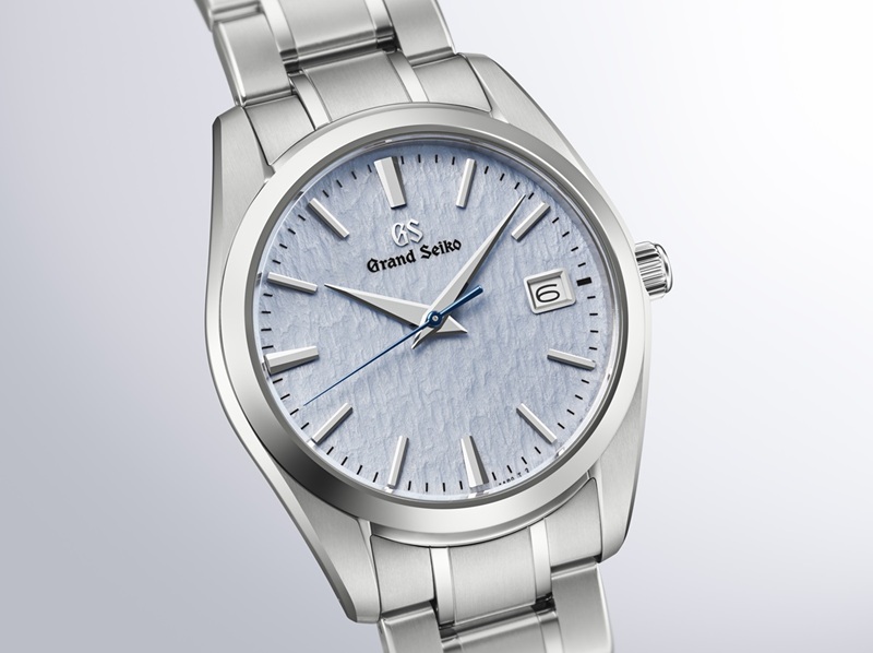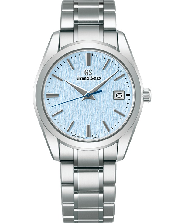 風紋が刻まれた雪のような独特なダイヤル模様は、信州の山々に積もった雪から着想を得たものです。この繊細な質感のダイヤルに、澄んだライトブルーのカラーリングを施しました。雪原を思わせるパターンと、清らかな水色のコントラストが、腕元にさりげない個性と洗練をもたらします。グランドセイコー専用の年差クオーツムーブメント「キャリバー9F62」を搭載し、37mmサイズのケースに仕上げました。ケースとブレスレットには、ステンレススチールと比べて約30%軽量で、耐傷性・耐食性に優れるブライトチタンを採用することで、軽くて心地よい装着感を実現しました。