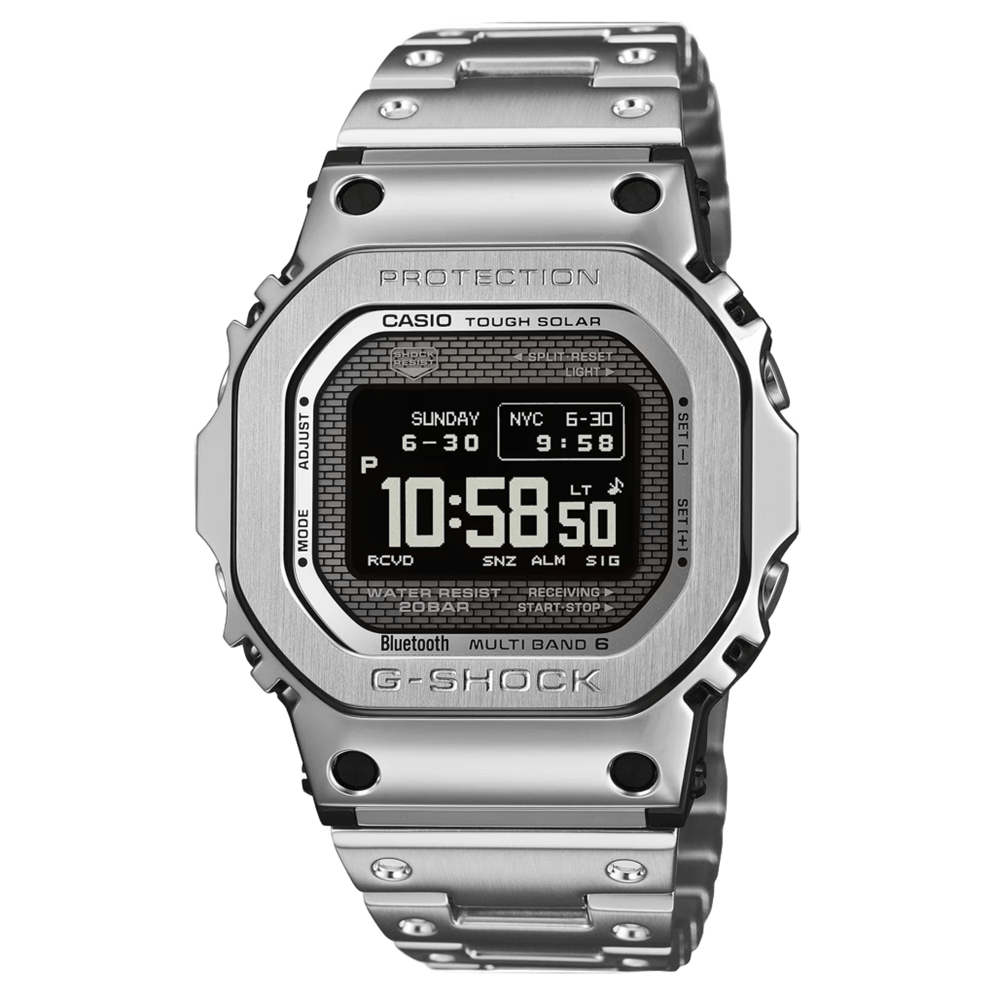 ベゼルとセンターケースを上下で連結した構造を開発。ケースサイドから見える造形が構造の美しさを強調。フルメタルながらG-SHOCKの耐衝撃基準をクリアし、気密性に優れたスクリューバックケースも採用しています。