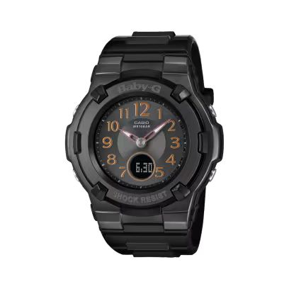 アクティブな女性のためのカジュアルウオッチBABY-Gから、どんな服装にも合わせやすいダークカラーを纏った電波ソーラーモデルです。