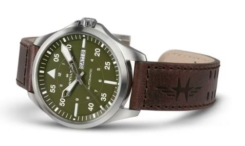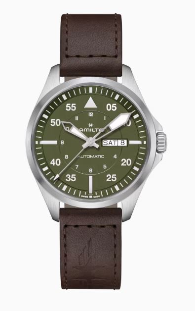 真の航空ファンのために作られた「カーキ パイロット デイデイト」は、「カーキ」の探究心や冒険心を呼び起こします。このモデルはニヴァクロン™製ヒゲゼンマイを備えた標準持続時間80時間のH-30自動巻きムーブメントを搭載し、ダイヤルにデイデイト表示および大型の数字を配して優れた視認性を実現しています。「カーキ パイロット デイデイト 42mm」は、ダークブラウンのレザーストラップにオリーブグリーンダイヤルを組み合せ、「カーキ」のアウトドアでの冒険のルーツにオマージュを捧げます。