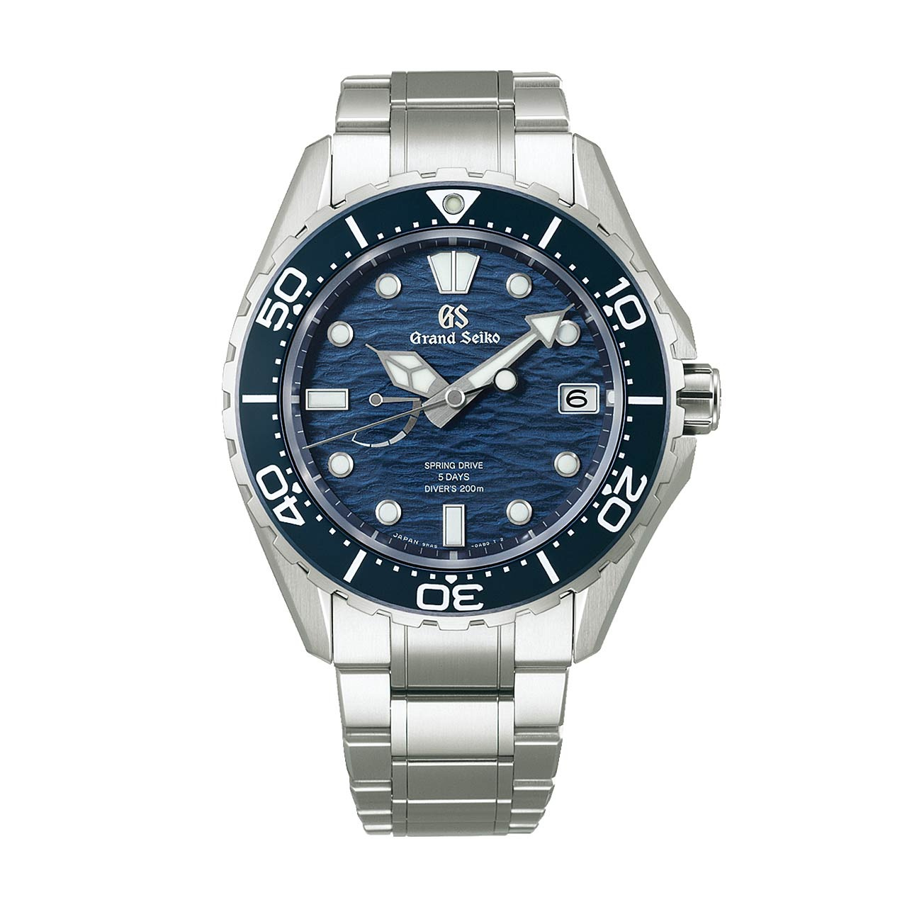 SLGA023のダイヤルは、日本近海でぶつかり合う2つの海流――黒潮の力強さと親潮の冷たく澄んだ流れから着想を得た、ダイナミックな波模様が刻まれています。さらに、ブランドを象徴するグランドセイコーブルーのセラミックス製回転ベゼル表示板が、ダイヤルの美しさと実用性をより一層引き立てています。