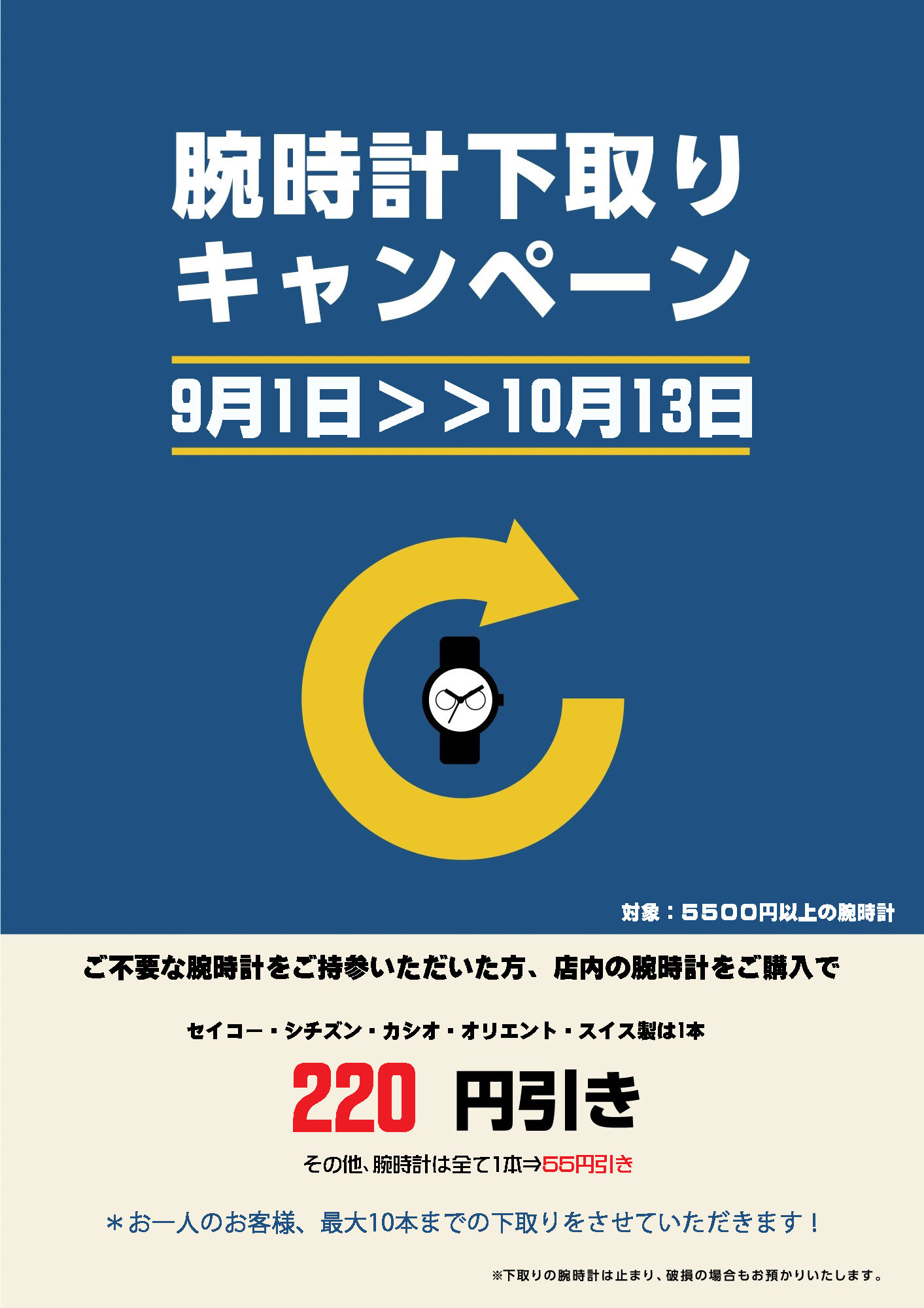 ■9月1日(月)~10月13日(日)の期間中、不要になった腕時計を下取りいたします。