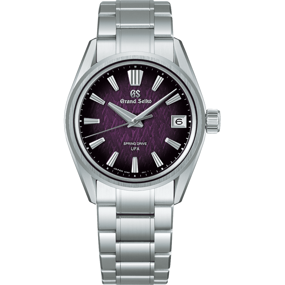 文字盤は、厳冬の信州に広がる「樹氷」の森の夜明けをイメージした、深みのある紫色のグラデーションカラーとなっています。