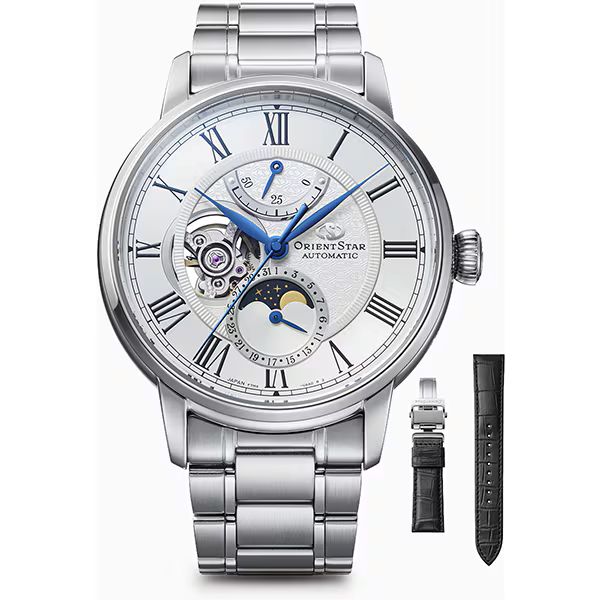 機械式ムーブメントの一部を見せるセミスケルトンの3つを組み合わせた「メカニカルムーンフェイズ」
