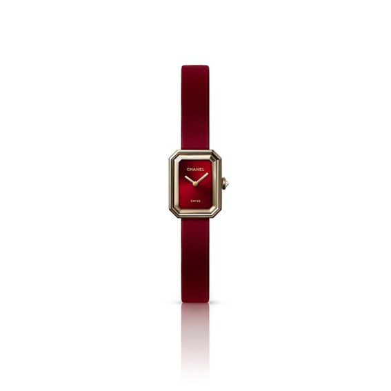 今回の新作プルミエール リボン レッドは、イエローゴールドケースと調和するダイアル、そしてヴェルヴェットのような質感のラバーストラップを、ガブリエル シャネルが愛した色、レッドで統一。深みのあるレッドが、タイムレスなデザインに洗練されたエレガンスを織り込んでいます。
