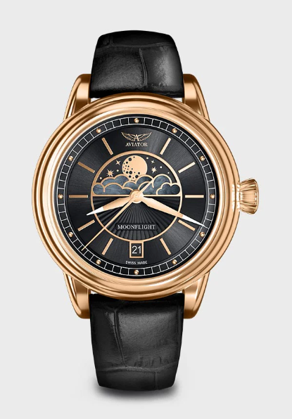 そして、月の満ち欠け表示するムーンフェイズ、ダグラスDC-3の特徴であるアールデコ調の特徴をミックスさせたAVIATOR MoonFlight~ムーンフライト~が誕生しました。