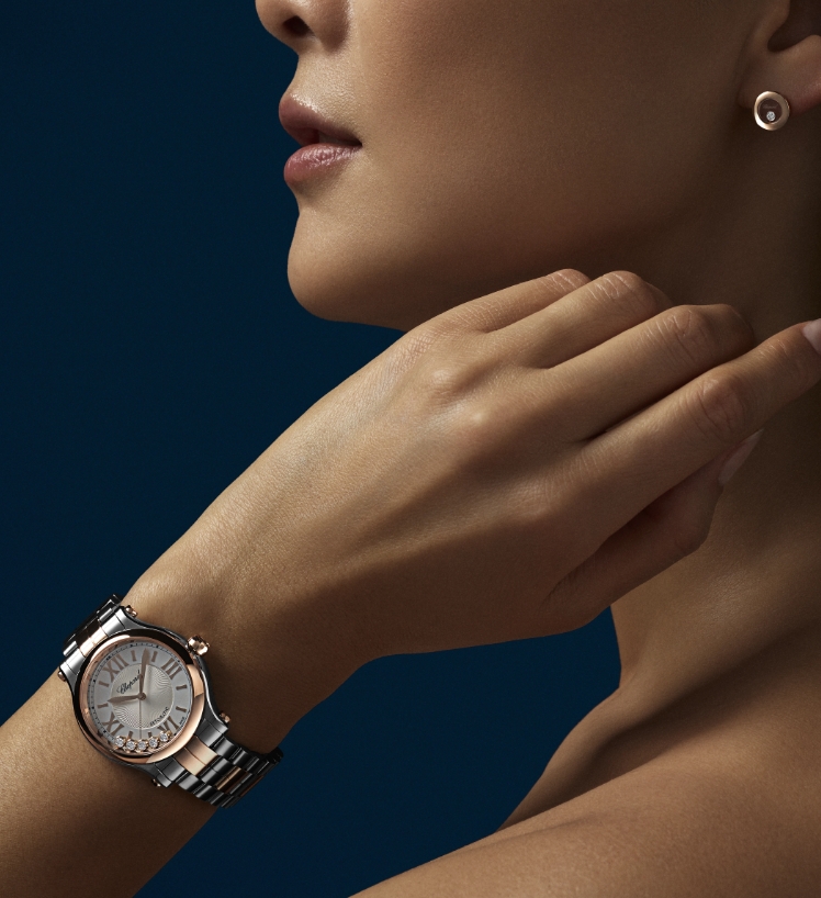 ハッピースポーツ コレクションは、ショパールの創造性と大胆さを象徴しています。2枚のサファイアクリスタルの間で生き生きと自由に舞う陽気なジェムは、1993年にショパールがスティールとダイヤモンドを組み合わせた初のメゾンとなって以来、イマジネーションを永遠の形に残します。ショパールは、高度な時計製造技術を駆使し、フェミニンな「ハッピースポーツ 33 mm」のために特別に開発された機械式自動巻きムーブメントを搭載しました。 Little Diamonds Do Great Things