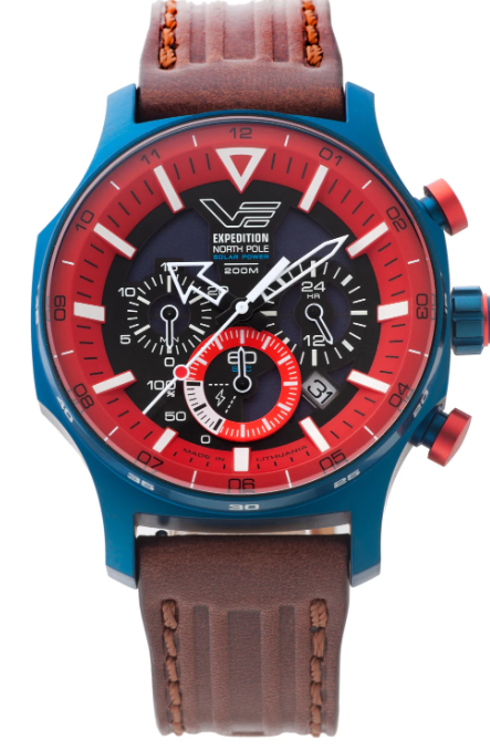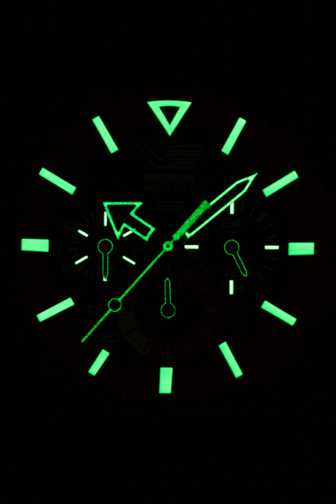 太陽光をエネルギー源とするこのクロノグラフは、長時間の駆動が可能、遠征やアウトドアアクティビティに最適です。