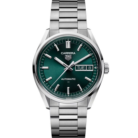 上品でエレガントな、タグ・ホイヤー カレラ デイデイト。ディープグリーンのサンレイ加工サテン仕上げダイヤルを備え、自社製キャリバー TH31-02 ムーブメントを搭載したモデルです。衰えない精度とエフォートレスなスタイルをもつ、洗練されたケース径41mmのこのモデルは、タグ・ホイヤー カレラのタイムレスな精神と、コンテンポラリーな洗練を映し出しています。