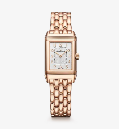 コレクションが受け継ぐタイムレスなデザインを、表裏二面の双奏でエレガントに描きます。上品な佇まいを湛える表ダイヤルには、針とケースの色調に寄り添うようにロゴとインデックスを同系色であしらい、これら色彩の重なりが洗練された美学を映し出しています。ケースを軽やかに反転させると現れるのは、深みのある豊かな色合いで異なる魅力を湛えるダークトーンのダイヤル。インデックスには二本線を放射状に配し、中央に施したサンレイブラッシュ仕上げがダイヤルに奥行きと立体感を添えています。マニュファクチュール製手巻きキャリバー844が心臓部で鼓動を刻むこのタイムピースは、50時間のパワーリザーブを誇ります。このモデルは18Kピンクゴールド(750/1000)製ブレスレットとトープカラーのアリゲーターストラップを備え、いかなるシーンにも寄り添いながら、多彩な表情で魅了します。