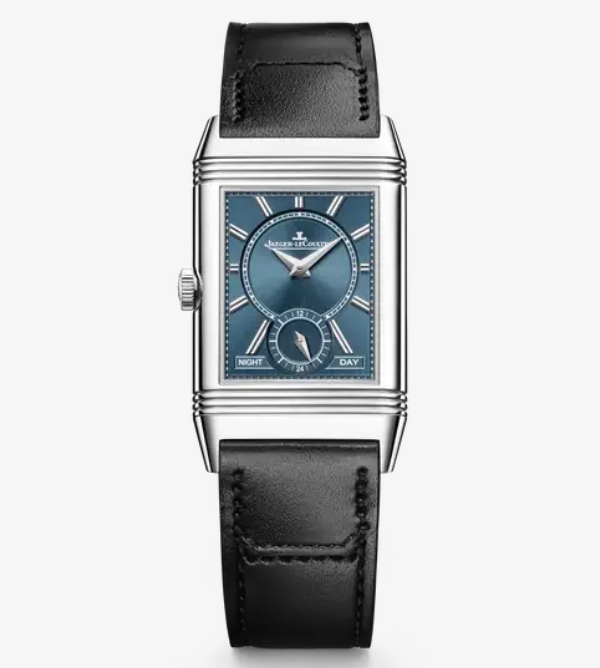 デュオフェイス複雑機構が搭載されたレベルソ・トリビュート・デュオ・スモールセコンドは、1931年誕生の初代モデルを象徴するデザインコード、アールデコ装飾様式より得たインスピレーションを反映する作品です。表面にオパーリン仕上げを施したホワイトダイヤルは、シュマン・ド・フェール装飾で縁取られたミニッツトラック、台形植字インデックス、ドーフィン針、そして6時位置に配されたスモールセコンドを際立たせ、それぞれの視認性と機能を高めています。裏面のサンレイ仕上げブルーダイヤルには6時位置にナイト&デイ表示を配し、ステンレススチール製ケースの側面に配したトリガーが、第2時間帯の設定を容易にします。いかなるシーンやスタイルにも寄り添うよう、このタイムピースにはカーサ・ファリアーノ・デザインの同色ストラップが2本 — 1本はエレガントなブラックレザー製、もう1本はレザーとキャンバスのバイマテリアル製ストラップが備わっています。