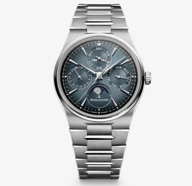 厚さわずか9.2 mm、39 mmの磨き抜かれたプロポーションが美しいステンレススチール製ケースに、ブラッシュとポリッシュ、2種の仕上げを組み合わせた一体型メタルブレスレットが、その洗練された造形を際立てます。パワーリザーブと日付を表示するアジュレ仕上げのサブダイヤルは、ブルーグレーのグラデーションに彩られたサンレイブラッシュ仕上げダイヤルに対を成すように配され、均整美を奏でます。心臓部には70時間のパワーリザーブを確保するマニュファクチュール製キャリバー738を搭載。さらに、完成状態の時計を実際の着用環境下で試験するジャガー・ルクルト独自のHPG認証により、COSC基準にとどまらない高い精度が保証されています。