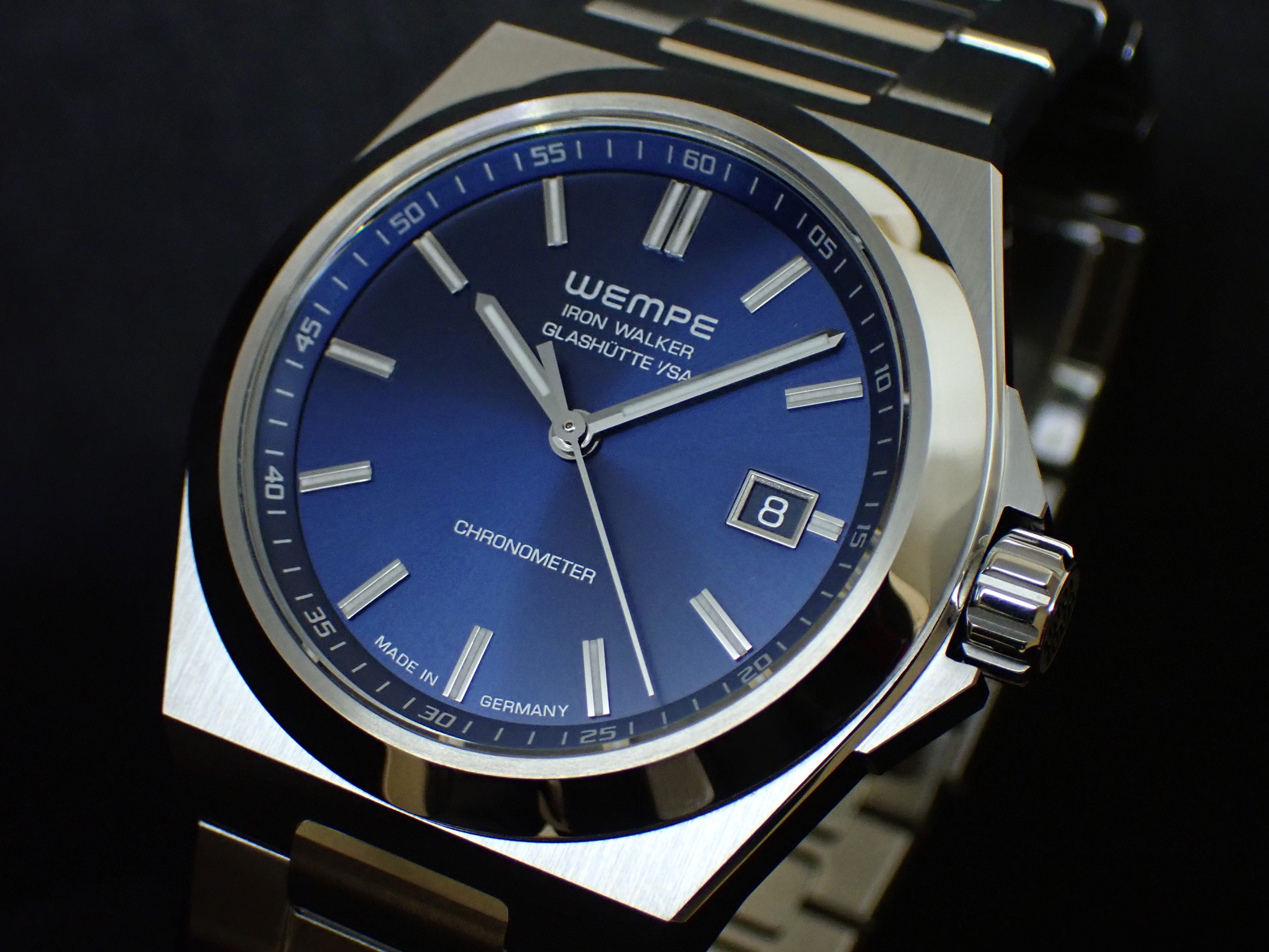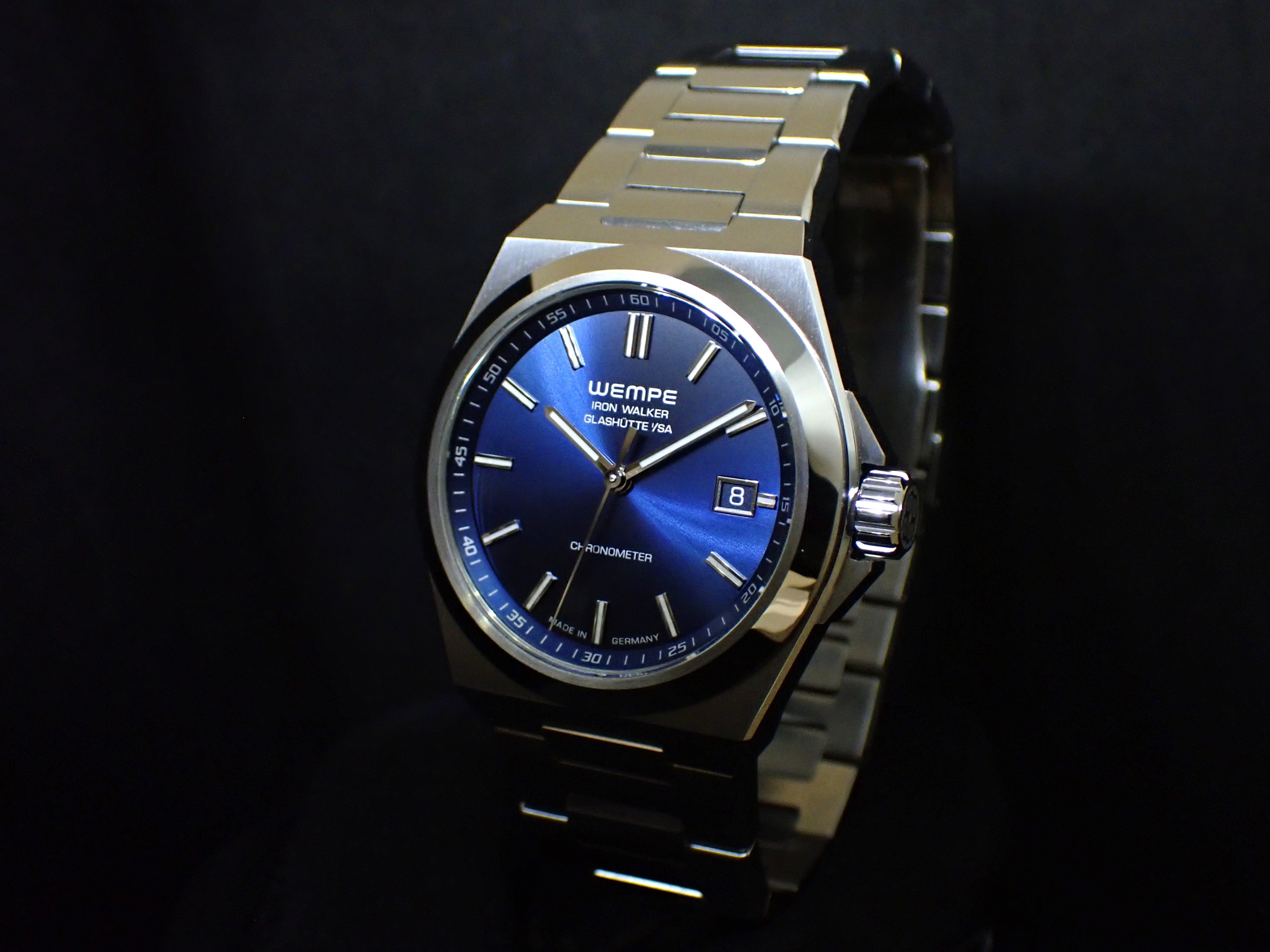 140年以上の歴史を持ち、欧米に店舗を構える時計宝飾店<ヴェンペ>。時計メーカーとしても力を入れており、全てのモデルをドイツ・グラスヒュッテの自社工房で製作し、ドイツクロノメーター規格を取得しています。今回ご紹介する「アイアンウォーカー」は、クラシックなモデルを得意としてきた<ヴェンペ>による初のスポーツモデルです。