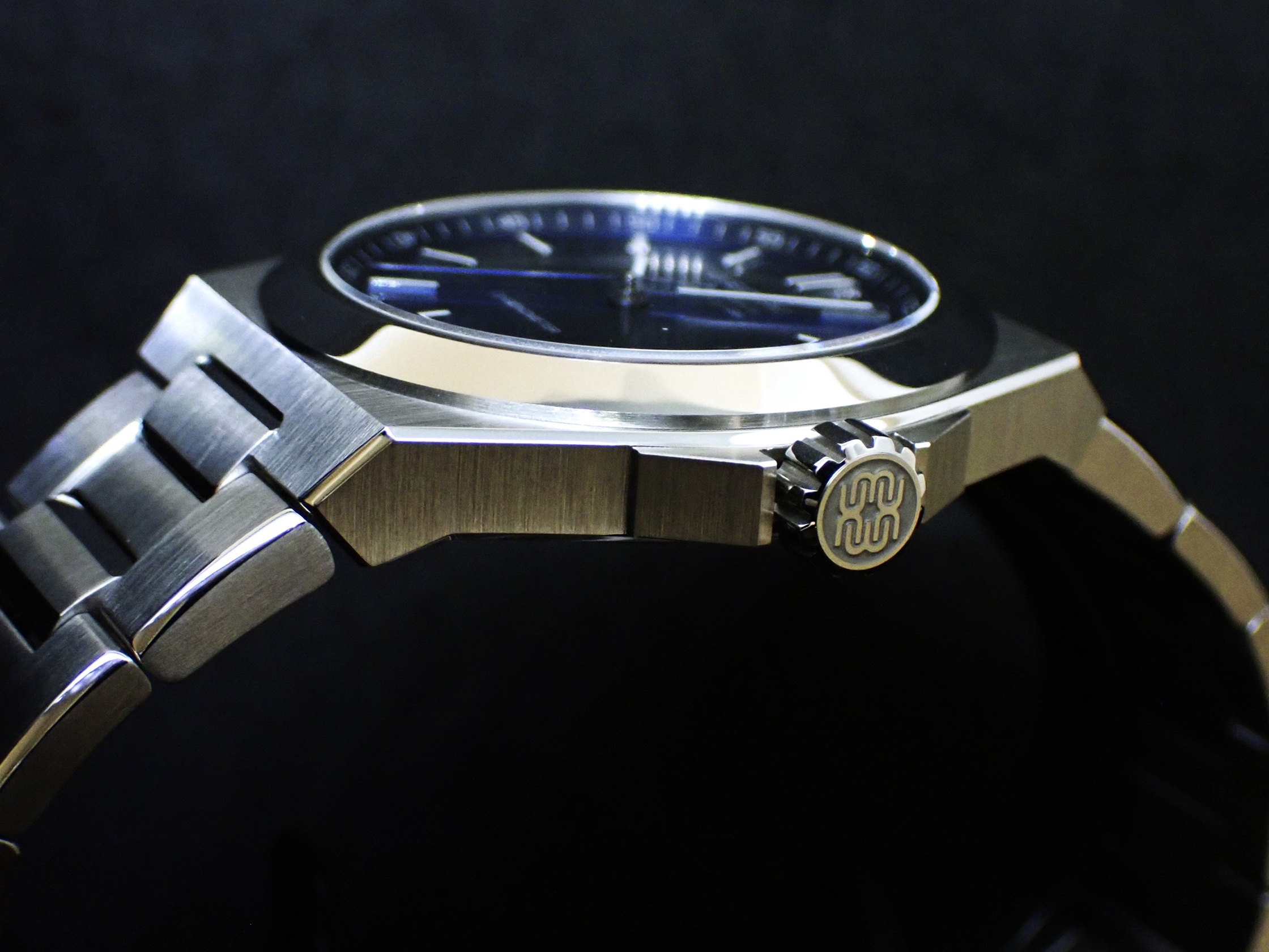 厚さ約9㎜の薄型ケースはヘアラインとポリッシュ仕上げの使い分けにより、エッジが強調されフォルムの美しさが際立ちます。ケースと連なるブレスレットも薄型となっており、優れた装着感を実現しています。