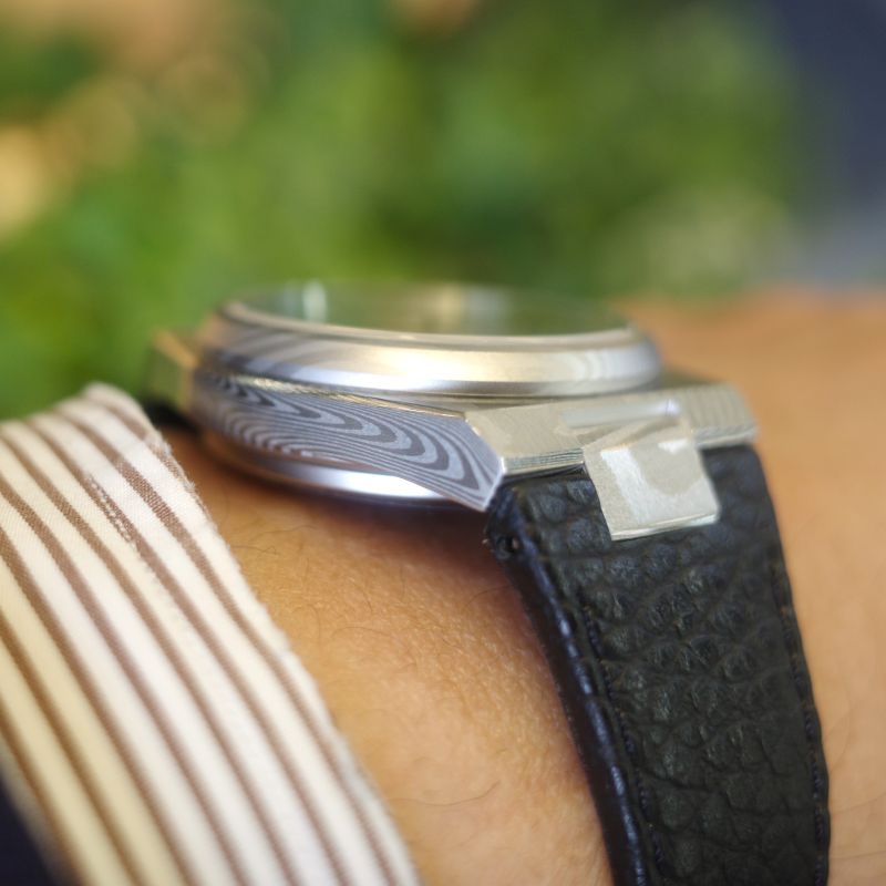 今回のモデルは、伝統的な鍛造ダマスカススチールの美意識を継承しながらも、時計製造に最適化された現代的アプローチによって生み出される、唯一無二のパターンを宿しています。