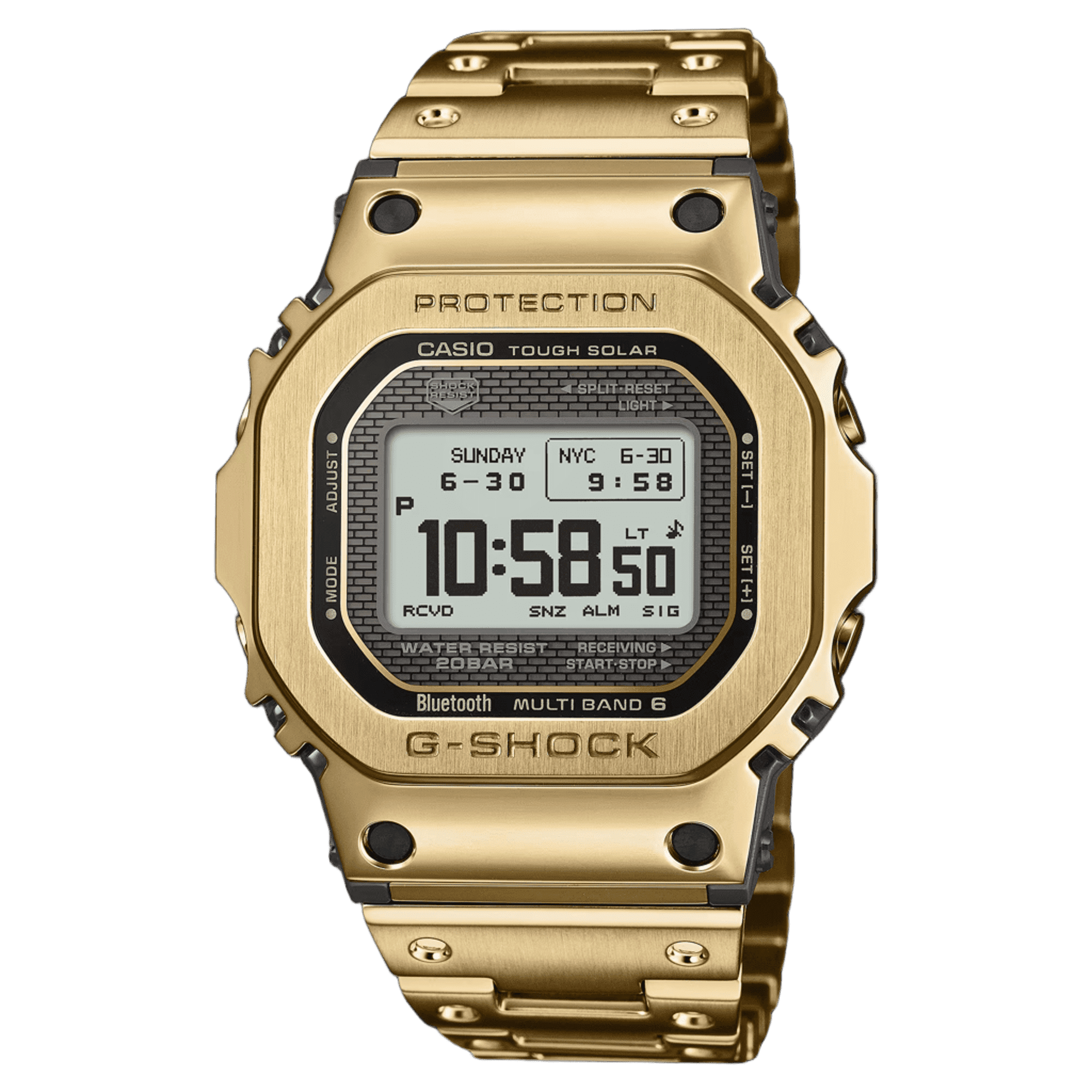 機能面ではBluetooth®通信機能により専用アプリと接続し時刻情報を取得。マルチバンド6やタフソーラー等、実用的な機能を備えています。