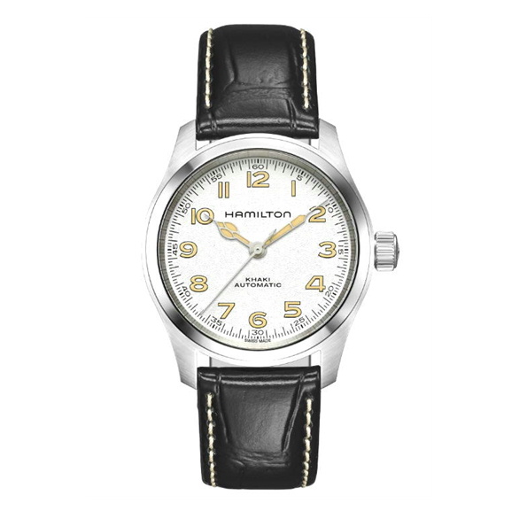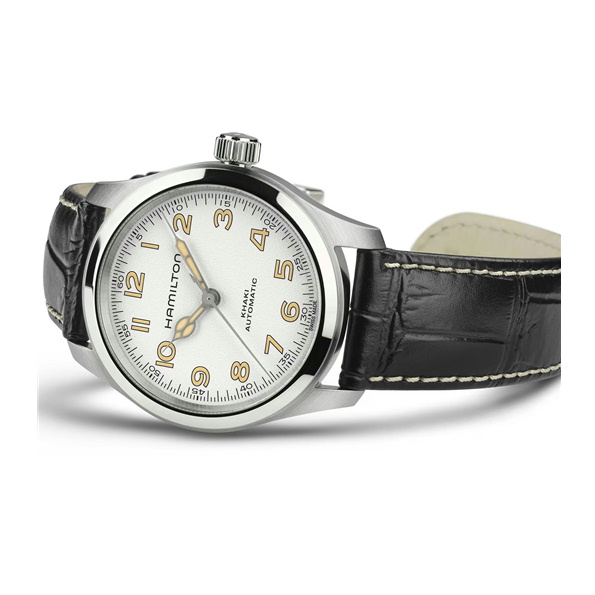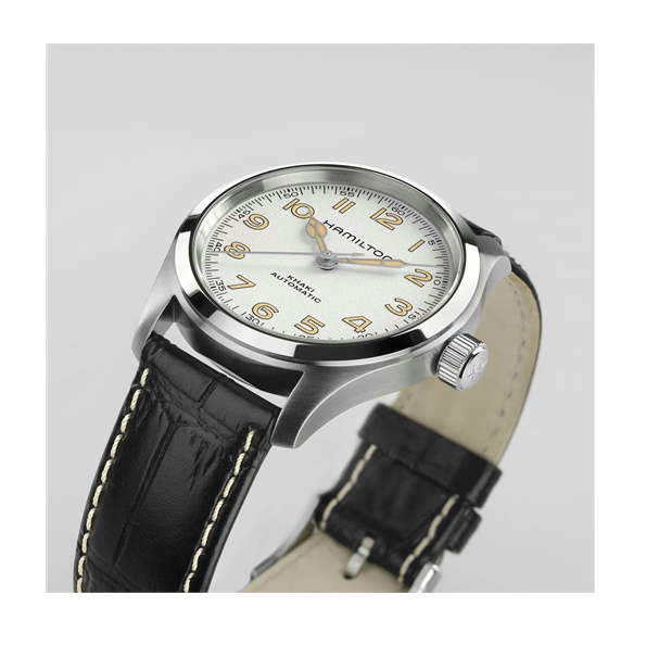 映画ファンにはアイコニックな存在の元祖「マーフウォッチ」が、モダンなアレンジを加えて登場。新しいアンティークホワイトのダイヤルにはグレイン仕上げが施され、カテドラル針がビンテージルックを添えます。ハミルトン愛好家にも、ハリウッドファンにも愛されるホワイトダイヤルの新モデルが、ブラックレザーストラップで登場です。