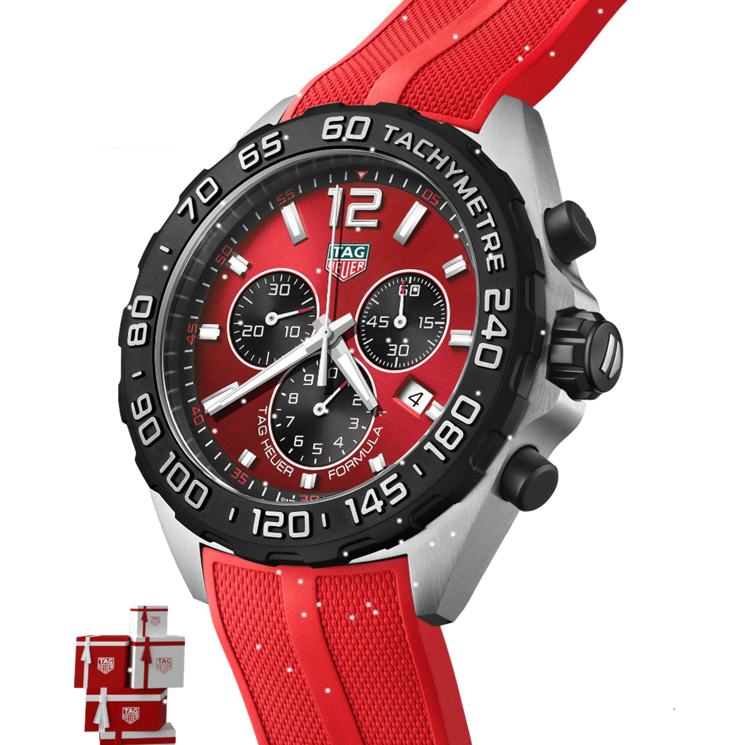 カラーとスタイルのペースを上げる、タグ・ホイヤー フォーミュラ1。ビビッドなレッドのダイヤルとそれにマッチしたラバーストラップを備えた、汎用性に優れた43mmサイズのクロノグラフです。スポーティなデザインコードが散りばめられたモーターレーシングコレクションが、勝利へと走り抜けます。