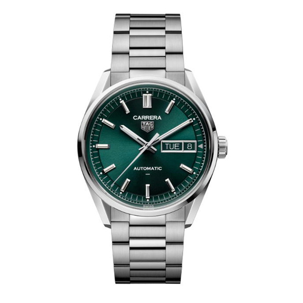 上品でエレガントな、タグ・ホイヤー カレラ デイデイト。ディープグリーンのサンレイ加工サテン仕上げダイヤルを備え、自社製キャリバー TH31-02 ムーブメントを搭載したモデルです。衰えない精度とエフォートレスなスタイルをもつ、洗練されたケース径41mmのこのモデルは、タグ・ホイヤー カレラのタイムレスな精神と、コンテンポラリーな洗練を映し出しています。