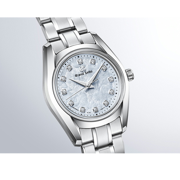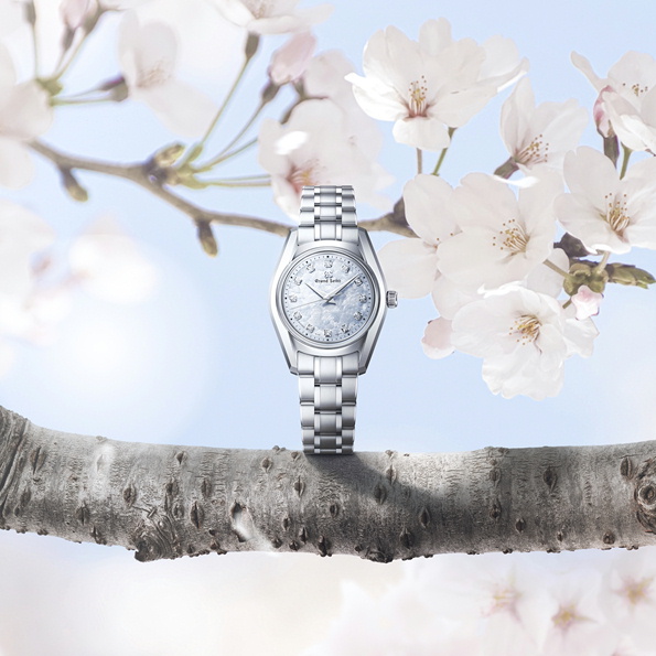 桜とともに光り輝く春の柔らかな風を表現した季語「風光る」をイメージしたスモールサイズのクオーツモデル。1967年発売のグランドセイコー史上初の自動巻機械式モデル「62GS」を現代的にアレンジした「62GS現代デザインモデル」をベースとし、日本特有の季節の移ろいをダイヤルで表現したモデルです。ベゼル(ガラス縁)のない構造によって広々と見えるダイヤルや、ザラツ研磨によって実現したシャープな多面体からなるケースが魅力です。ダイヤルは、桜の咲き渡る春の陽光の中を、爽やかな風が花びらを揺らし、きらめきながら吹きわたる情景を表現。ムーブメントは、年差±10秒のクオーツ「キャリバー4J51」を採用しました。
