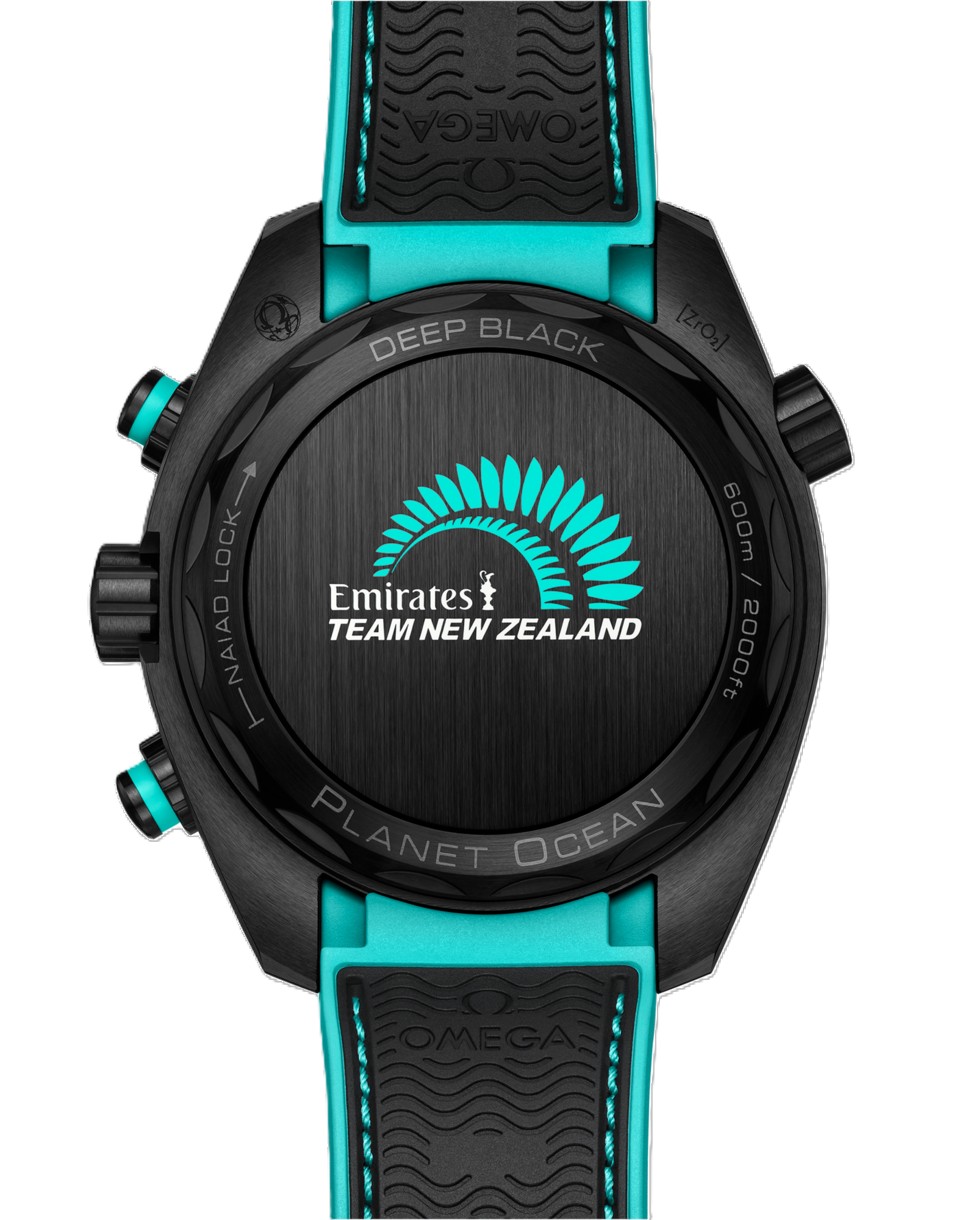 第37回アメリカズカップの選手たちにトリビュートを捧げる45.5mmサイズのモデルは、深いブラックに、エミレーツ・チーム・ニュージーランド(ETNZ)のロゴのカラーであるターコイズを合わせたデザインです。