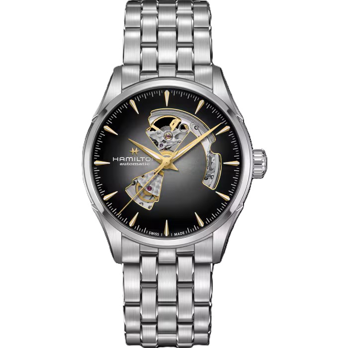 ジャズマスター オープン ハート 42mm」は、腕元にさりげなく確かな洗練さと気品を宿します。サンレイ仕上げのダイヤルとスモーキーなアクセントが、特徴的なオープン ハートのデザインを際立たせ、サテン仕上げのステンレススチール製ブレスレットが全体を完成させています。現代的な精度に魅力を融合させたクラシックなドレスウォッチです。