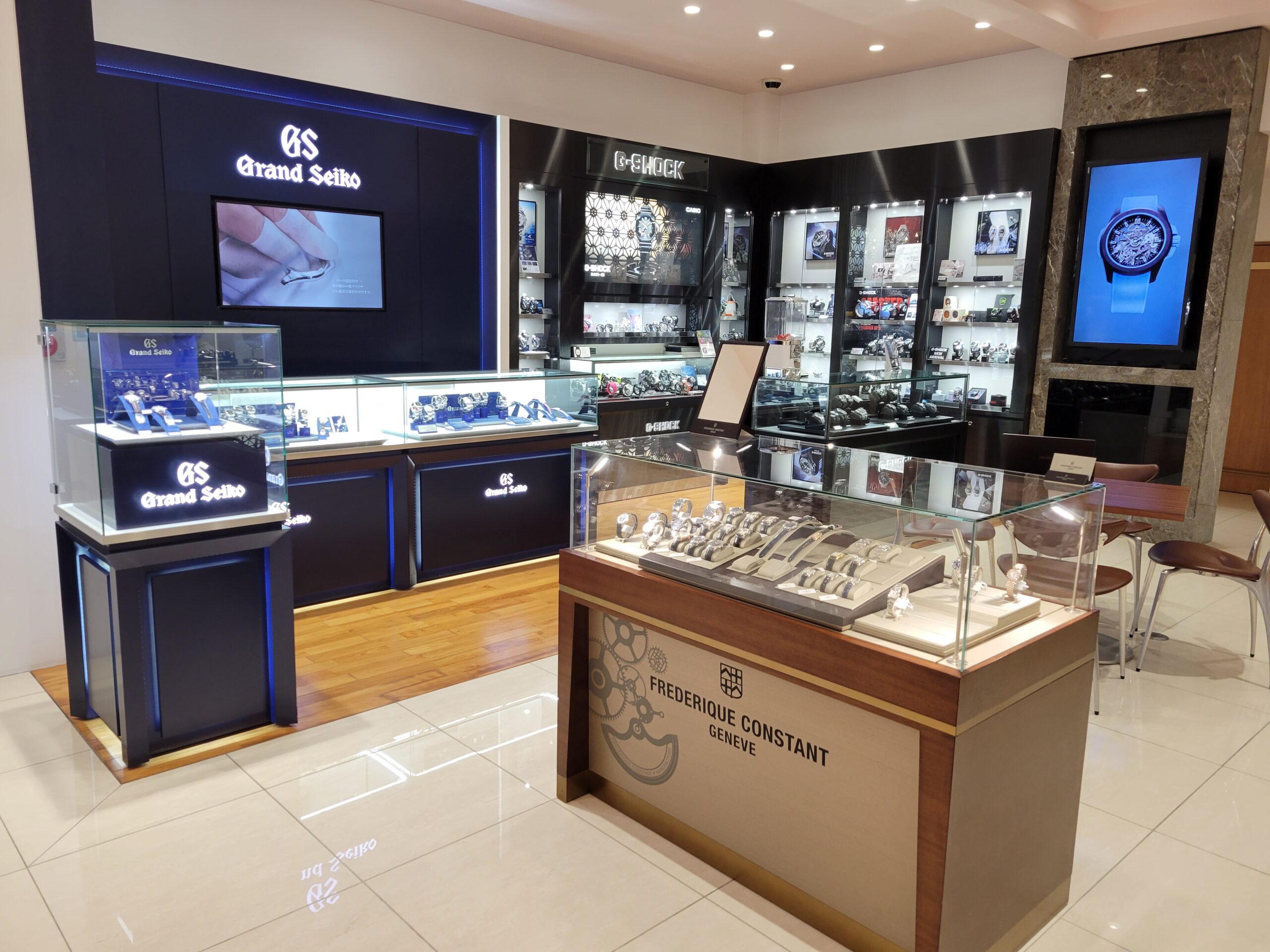 落ち着いた空間でゆっくりと時計をご覧いただけます。
