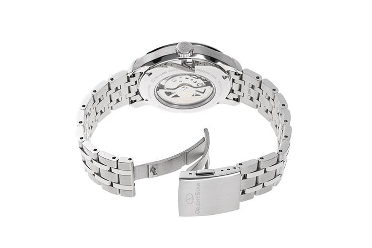 自動巻 (手巻付)、パワーリザーブ表示機能、シースルーバック、24石、秒針停止装置付き