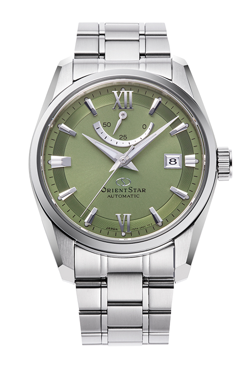 ・パワーリザーブ表示機能: オリエントスターのアイコンともいえるパワーリザーブインジケーターを12時位置に搭載。ゼンマイの巻き上げ残量がひと目で分かり、機械式時計を扱う楽しさと実用性を高めています。