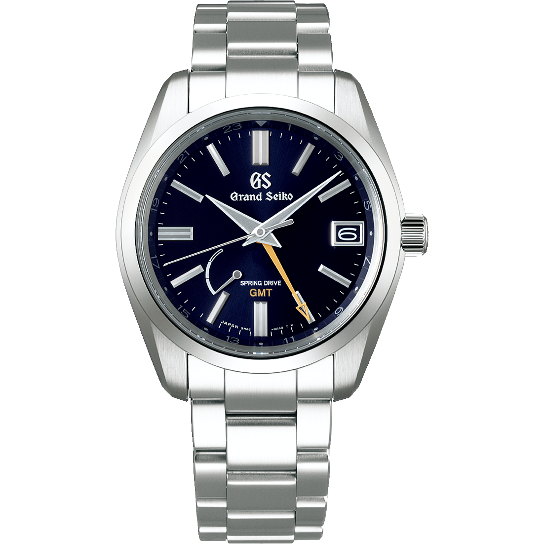 ダイヤルカラーは黒に近いミッドナイトブルーを採用し、グランドセイコーの王道デザインのケースと組み合わせたスプリングドライブGMTモデルです。