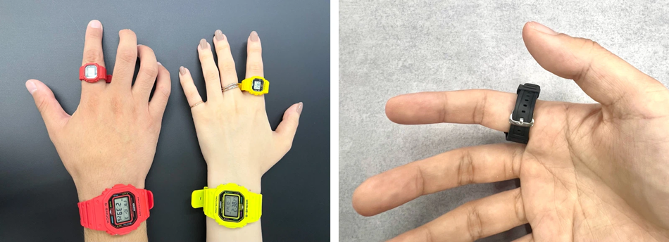 究極のファッションガジェット: G-SHOCKの象徴的なデザインとタフネスを、指輪サイズに凝縮。腕時計とは違う、指先にまとう新しいデジタルアクセサリーです。