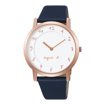 エレガントで洗練されたタイムレスなデザイン。マルチェロのアイコンともいうべき2針の薄型モデルです。ピンクゴールド色ケースにネイビーのカーフレザー。ユニセックスサイズ。