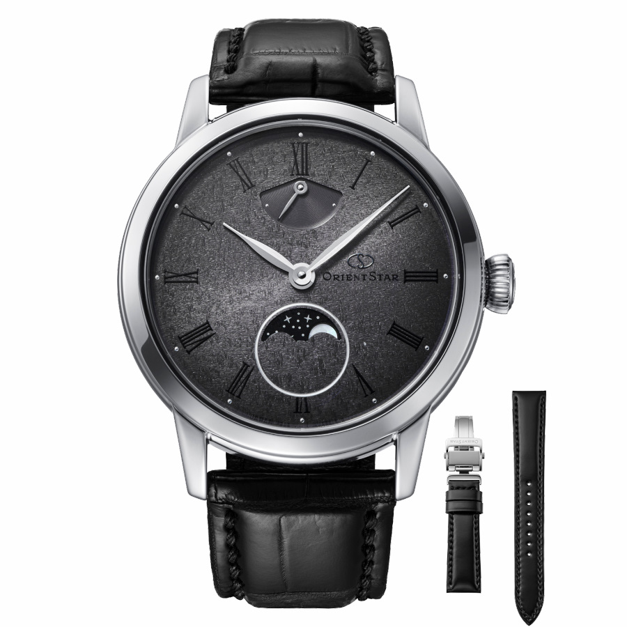 グレーグラデーション文字板の数量限定モデルが描き出すのは、暗闇に光る神秘的な星団すばる(プレアデス)と月が織りなす美しい情景。「M45(すばる)」を成す無数の星々を型打ち模様で文字板に施し、独自に調合された塗料を文字板中心のグレーから外周に向かってブラックへと変化するモノトーンな階調を生み出しました。