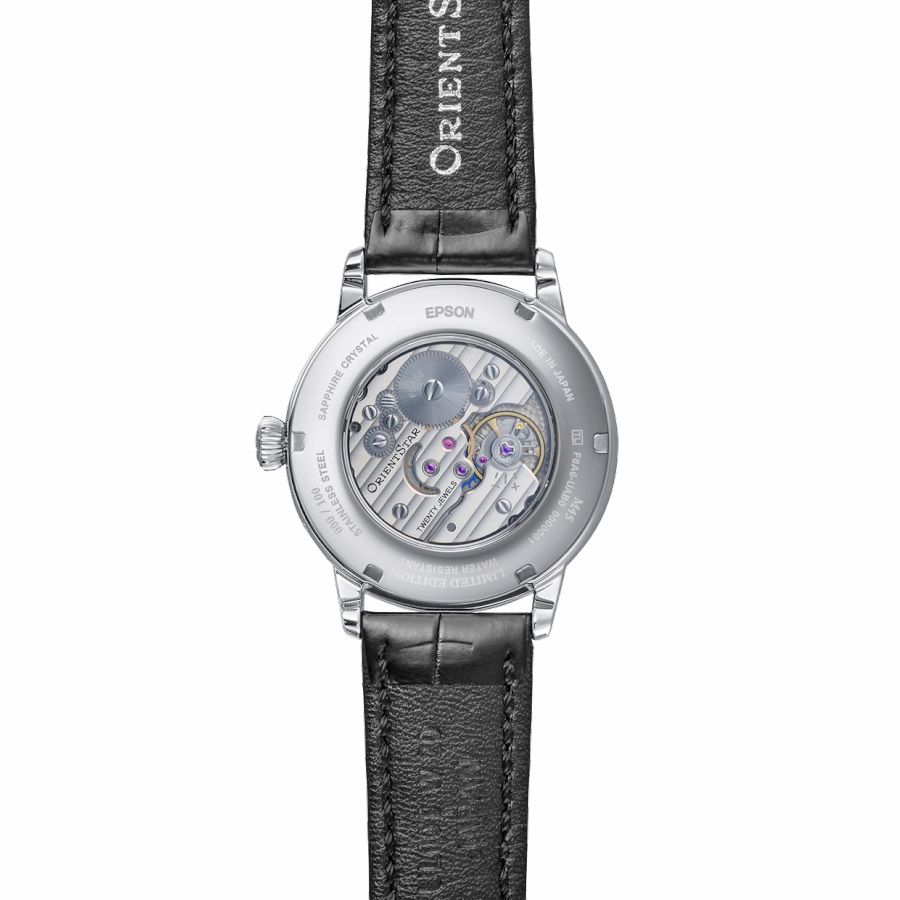 自社開発のシリコン製がんぎ車を組み込み、70時間の持続時間を実現。また星の軌跡をイメージした波目模様や三日月形の窓を設けているのも特長です。