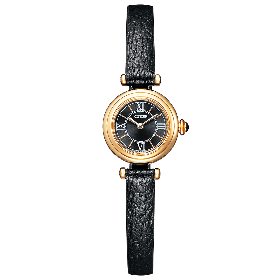 ころんとした形に、華奢な佇まいが魅力のラウンドケース。インデックスにはクラシカルでマニッシュな印象のローマ数字フォントを採用し、小さめサイズながらも視認性に優れています。風合いのある牛革バンドは、裏地のカラーリングにもこだわり、細部のおしゃれまで楽しめる1本です。