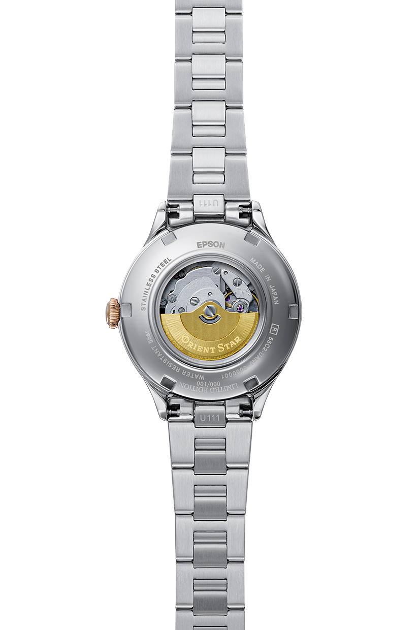 その他特徴 自動巻 (手巻付)、シースルーバック、20石、替えバンド付(中留タイプ/プッシュ三つ折式、材質/皮革)