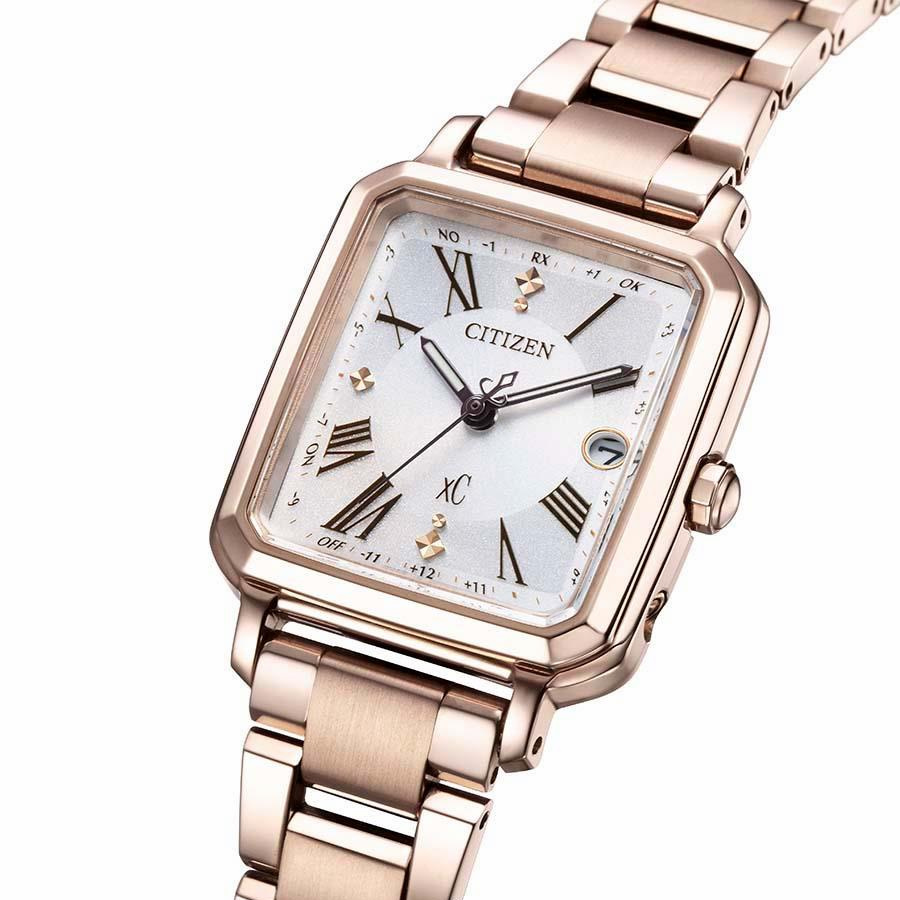 優しくフェミニンなクロスシーらしいケースライン。軽く、薄く、大きすぎないサイズ感で、スクエアを柔らかな印象へ導きます。インデックスは、伸びやかなローマ数字をラウンドに配置しつつ、12時、6時、9時の輝くカットパーツはhikariコレクションの特長です。シーンに合わせて印象が変えられる付け替えバンドがセットされているので、ご自身で付け外しができるインターチェンジャブル構造を採用。メタルバンドは、好みの長さに調節できるシンプルアジャストです。