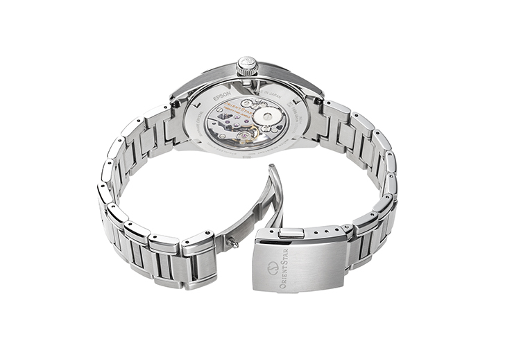 9時位置にあるムーブメントの特徴的な抜き形状は、彗星特有の2つの尾を持つ形状をモチーフとし、端面に高精度な面取り加工を施すことで、美しい輝きを実現しています。