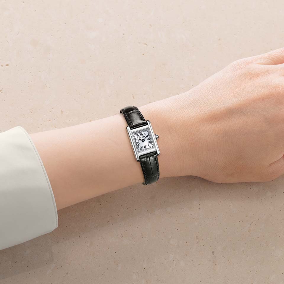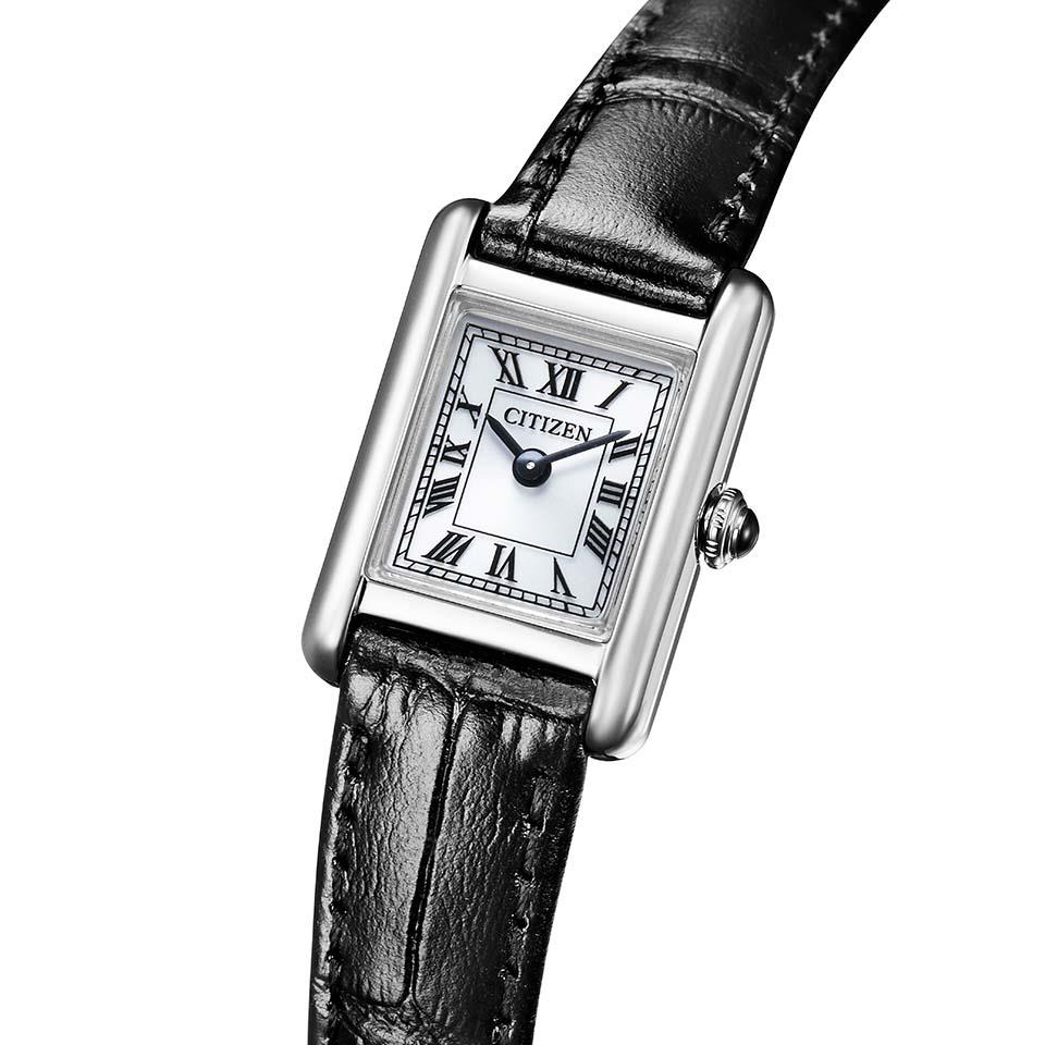 ヴィンテージ調の雰囲気を漂わせながらも、優しさと落ち着きを感じるデザイン。サイドに丸みを持たせたケースが、洗練された優しさを醸し出します。ローマ数字で統一したインデックスと型押しを施した牛革バンドが、落ち着きのあるクラシカルな表情を際立たせています。少し大きめのりゅうずが小ぶりなケースにアクセントを添えます。