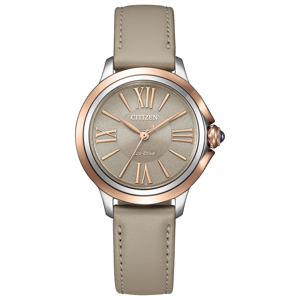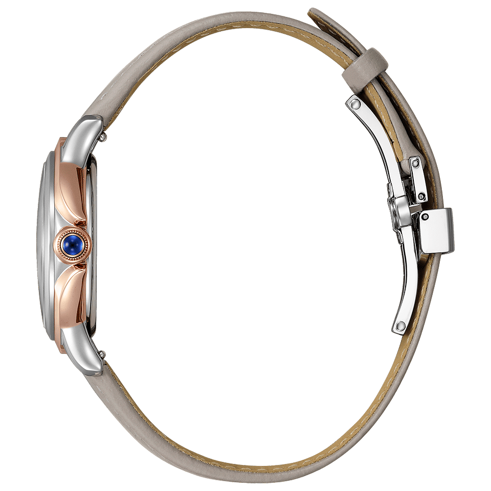 「つぼみを包む」をコンセプトに、内に秘める静かで強い植物の生命力を、柔らかな曲線とボリューム感で表現。重厚感も感じられる丸みを帯びたゆるやかなケースと、力強くスタイリッシュな印象の中に柔らかな印象のバンドに仕上げています。ゆったりとしたデザインのローマ数字インデックスと長いリーフ針、同じ色でまとめた文字板とバンドで、上品さと高級感を演出しました。