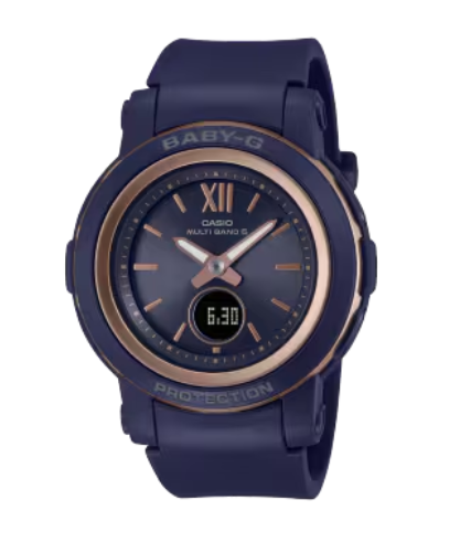 アクティブな女性のためのカジュアルウオッチBABY-G。ベーシックスタイルと相性の良いコンパクトな電波ソーラーモデルです。