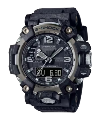 土砂や泥濘の中での任務に求められる「防塵・防泥構造」はそのままにダウンサイジングを行い、装着感の向上を図っています。樹脂の中にカーボン繊維を練り込み、金型で熱プレスし固めて成形したフォージドカーボンベゼルと、カーボンコアガード構造のケースにより小型化を実現。ステンレス製のボタンパイプとシリコーン製の緩衝素材を組み合わせたマッドレジストボタンにより薄型化を実現しました。機能面では電波ソーラーに加えてトリプルセンサーを搭載し、「方位、気圧・高度、温度」情報を取得可能。アラビア数字の大型インデックスと矢印型の極太の針を使用、ダブルLEDライト、サファイアガラス等により高い視認性も確保しています。